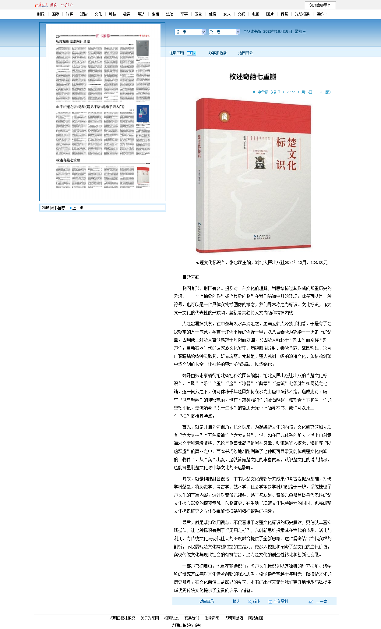 《中华读书报》发表 光明网转发|《楚文化标识》书评《枚述奇葩七重瓣》